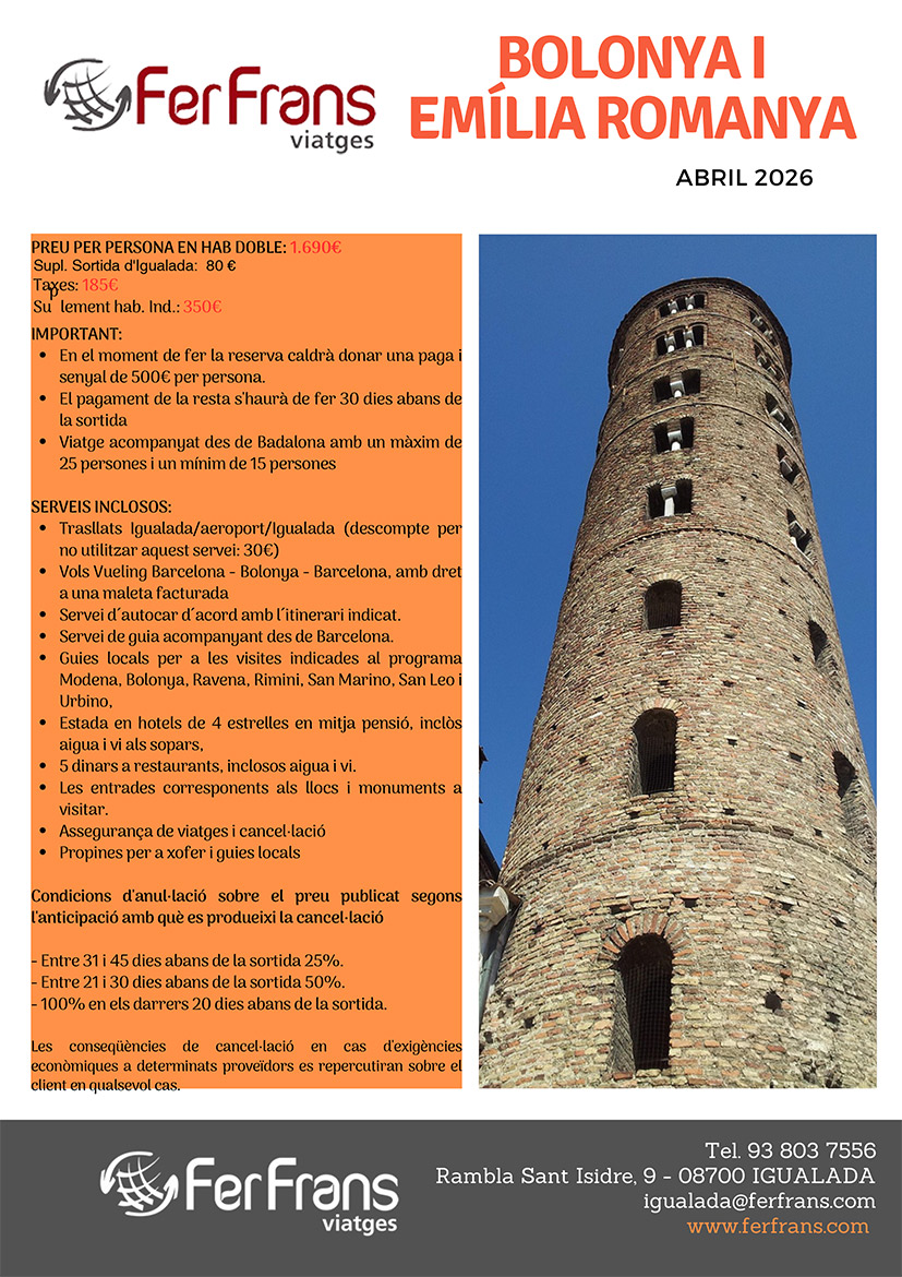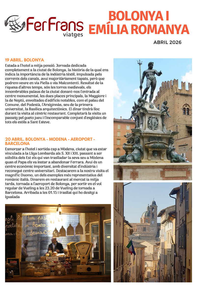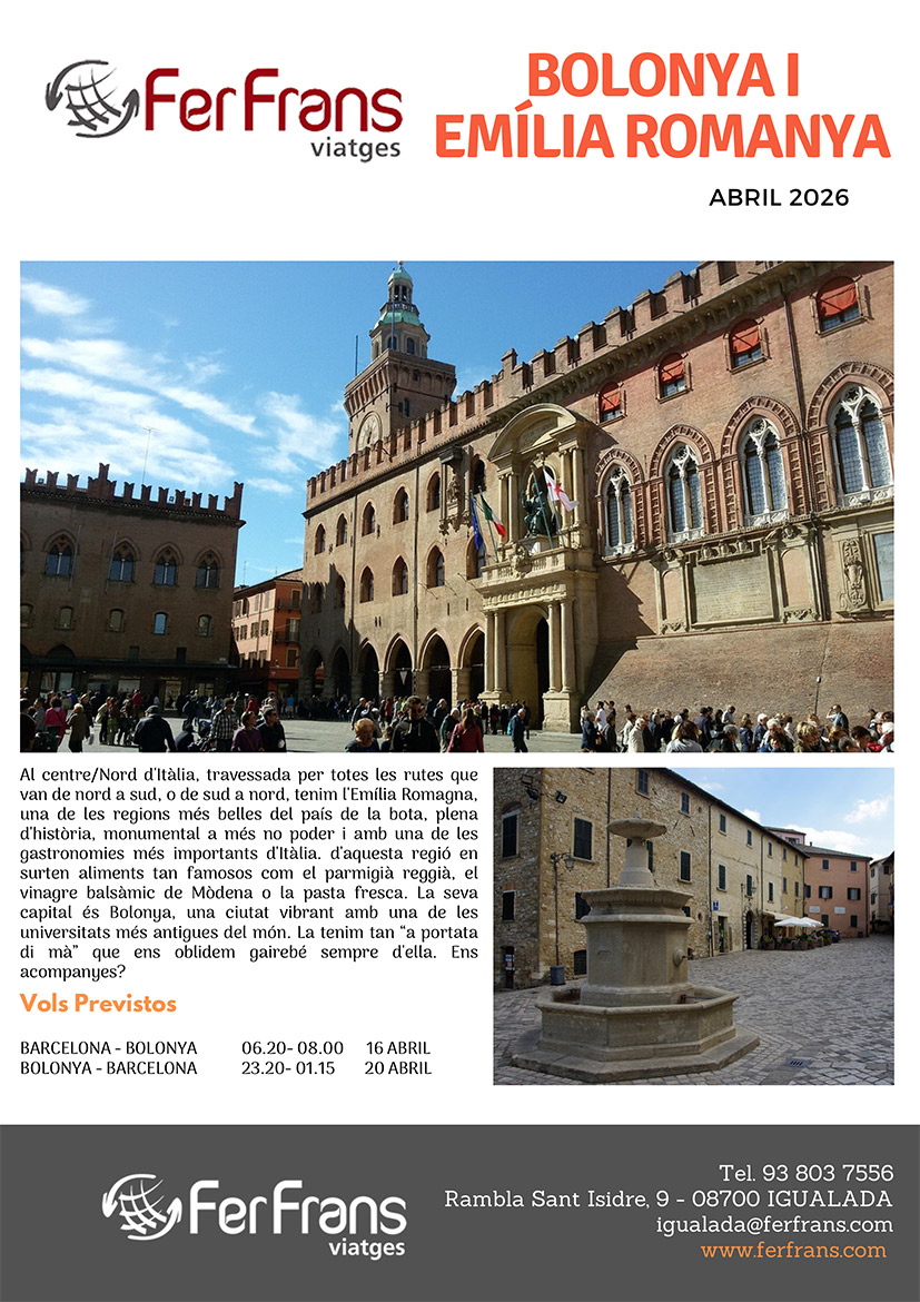 5 dies de viatge a BOLONYA + Guia acompanyant + Grup reduït + Pnesió Completa + Totes les visites