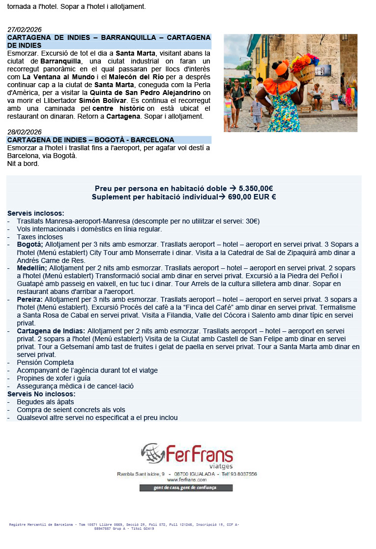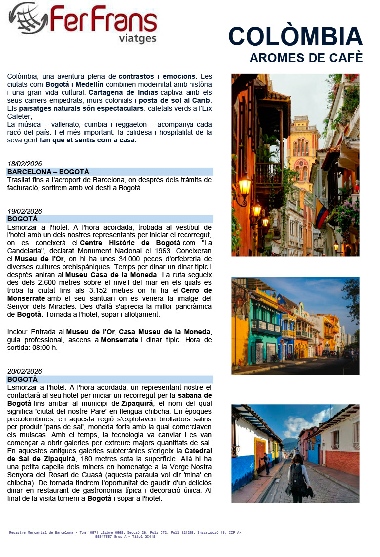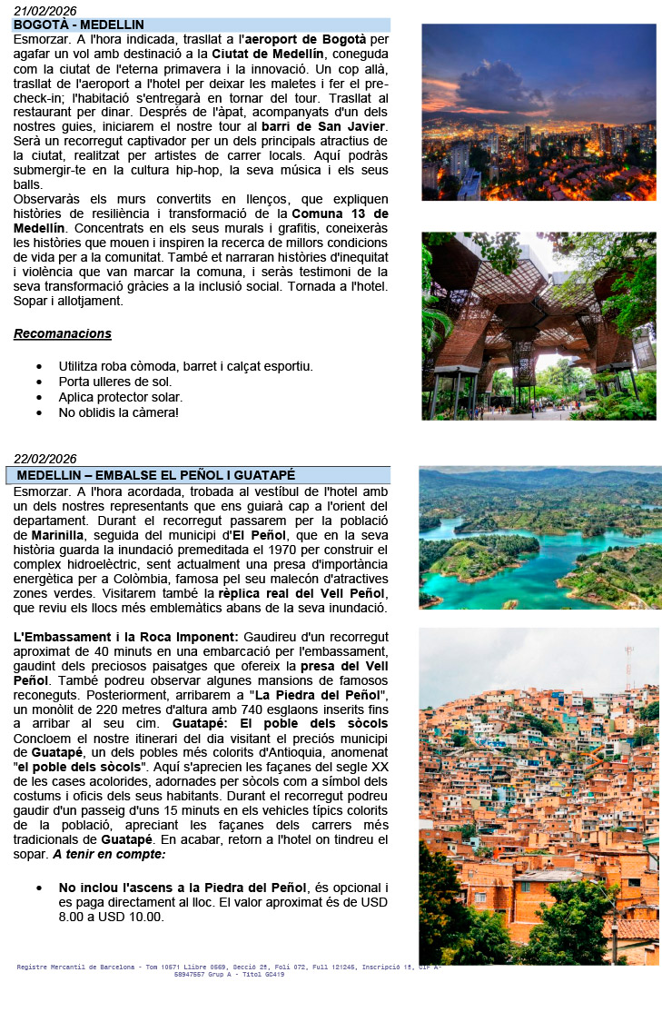 11 dies de viatge a COLOMBIA + Gruip reduït ç Guia acompanyant + Pensió Complerta + totes les visites