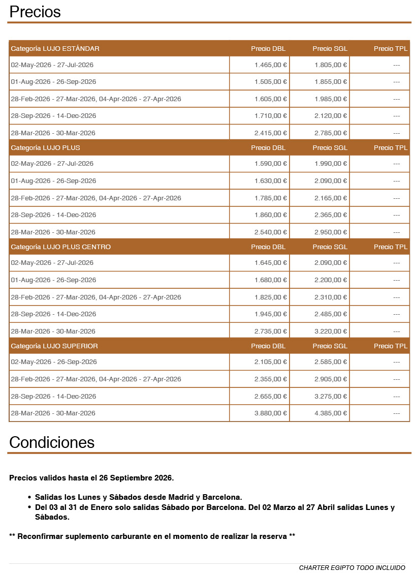 EGIPTE amb Tot Inclós ‘Març a Octubre