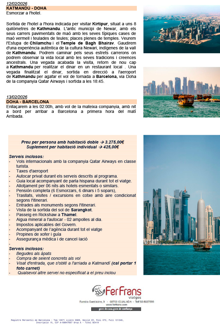 9 dies de Viatge a NEPAL I DOHA + Grup reduït + Guia Acompanyant + Pensió completa + Totes les visites