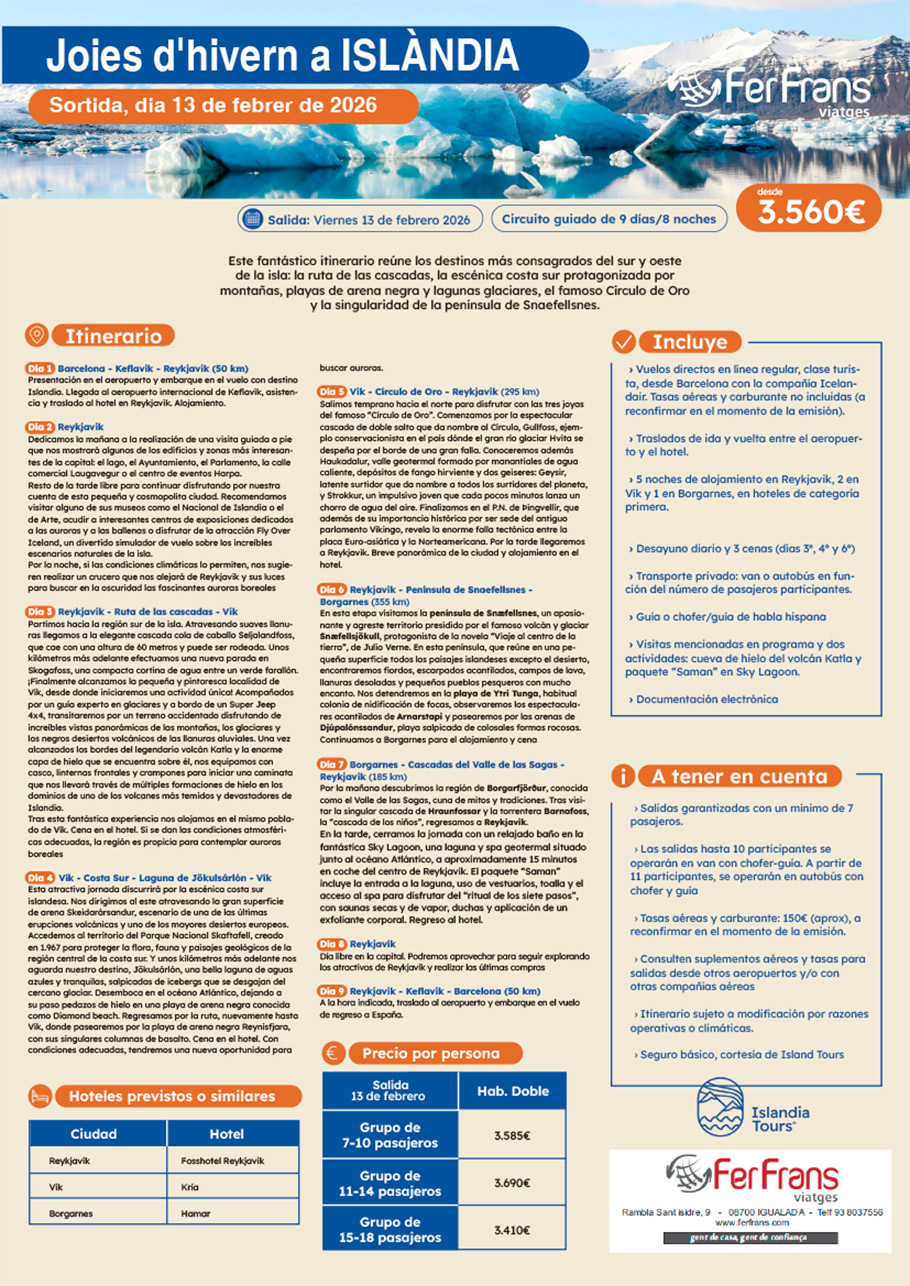 Viatge a ISLÀNDIA de 9 dies + Guia acompanyant al destí + Dormir i esmorzar i 3 sopars + Visites indicades a l'itinerari