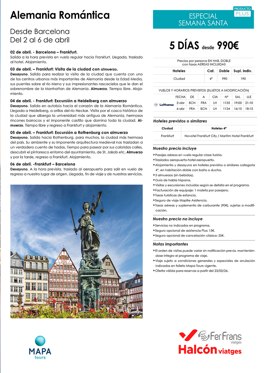 5 dies de viatge a ALEMÀNIA + Guia al destí + A.D. + 3 Sopars + Visites detallades al programa