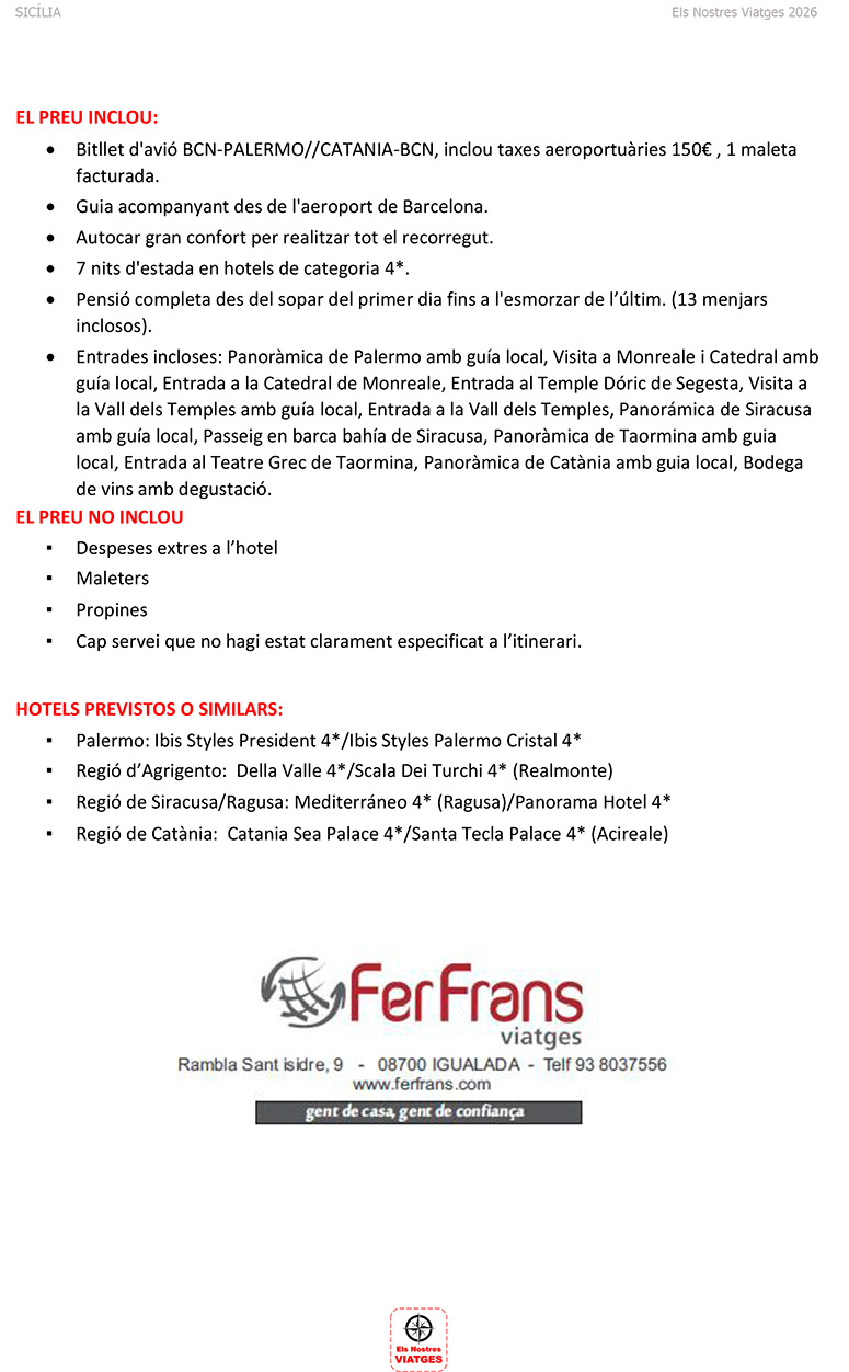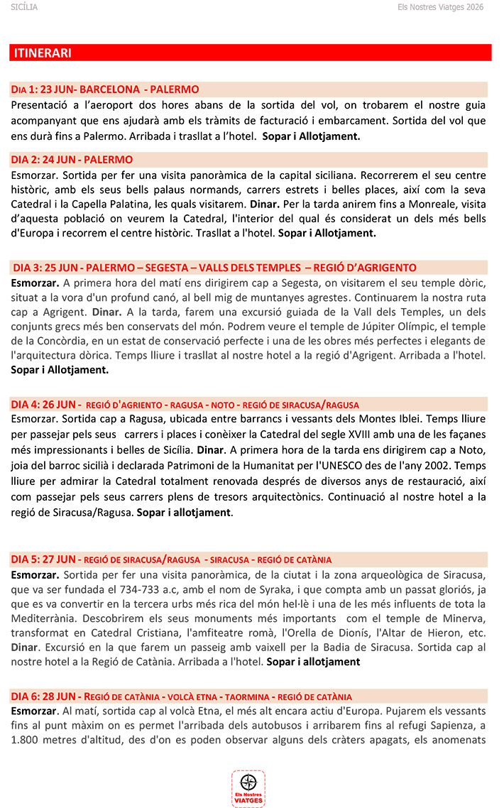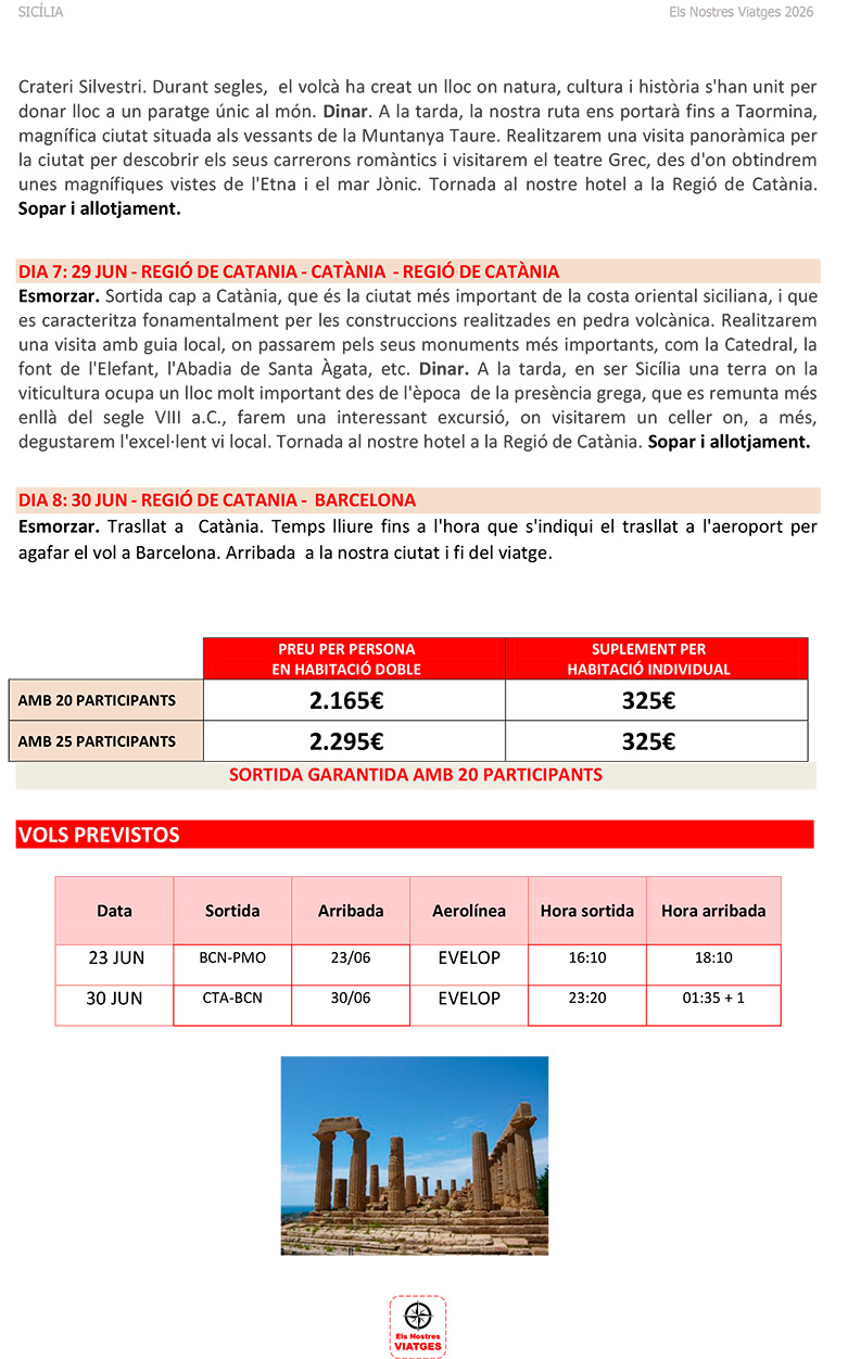Viatge de 8 dies a Sicilia + Guia Acompanyant + Grup reduït + Pensió Completa + Totes les visites